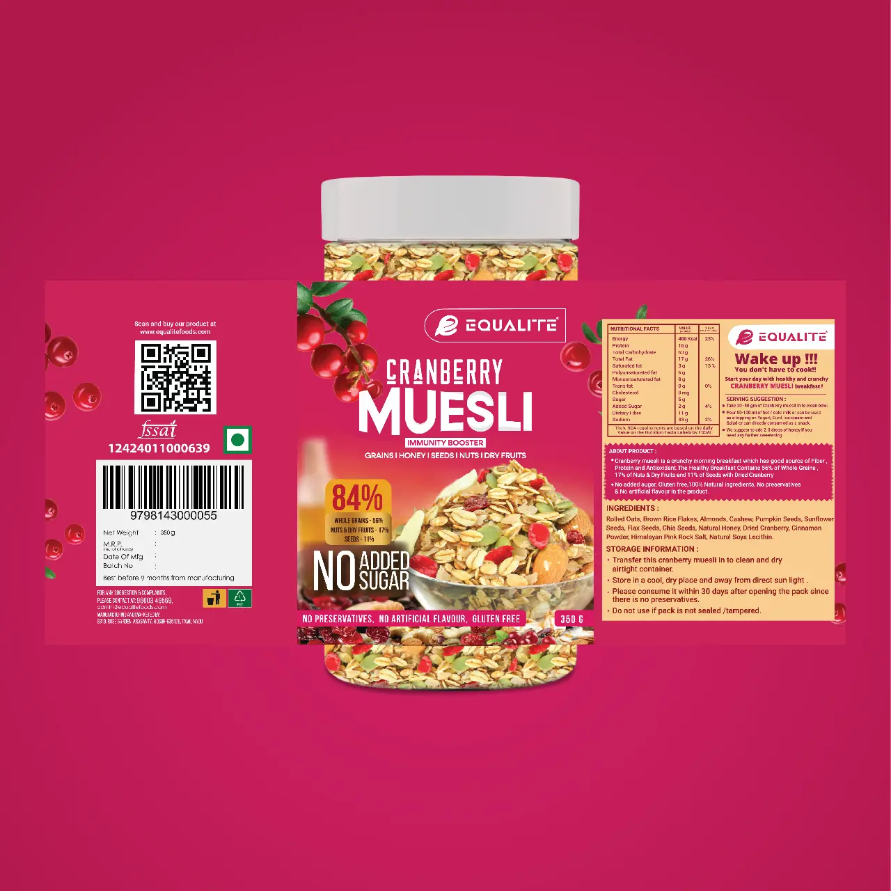 - Cranberry Muesli is a crunchy morning breakfast which has good source of Fiber, Protein and Antioxidant.